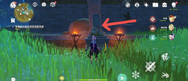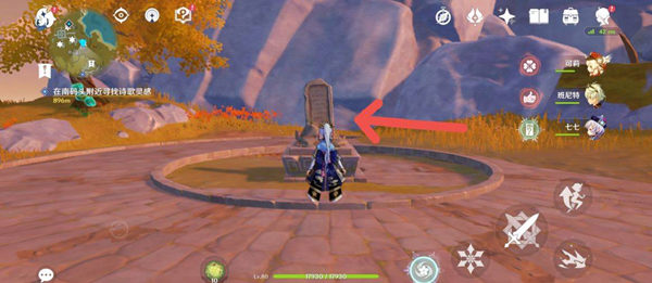 1、前往進入遺跡廣場,歸離繞后背后的集遺跡尋火把那,找到第一塊石碑。找古置介